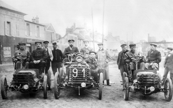 C’est ainsi que naissent les premières courses de voitures. La toute première course officielle a lieu en 1887, à Paris, mais sans véritable concurrent. C’est surtout la course Paris-Rouen de 1894 qui est considérée comme la première grande épreuve automobile. Organisée par le journal Le Petit Journal, elle attire de nombreux inventeurs et pilotes, ayant la volonté de montrer la fiabilité et la rapidité de leurs véhicules. Ces premières courses ne sont pas seulement des compétitions sportives : elles permettent de tester la fiabilité et la solidité des véhicules. À partir de là, l’automobile progresse rapidement, et les courses deviennent de plus en plus populaires, annonçant les débuts de la compétition automobile moderne, comme les 24 Heures du Mans, créées plus tard en 1923.